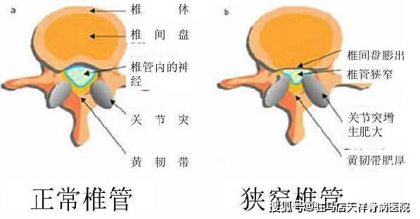 (1)病因:腰椎管狭窄症的主要原因有先天与后天的区别。所谓先天的腰椎管狭窄症是指椎管先天发育较窄,在同样有组织退变增生的情况下,容易引起症状。后天因素是由于退变、损伤等原因引起黄韧带肥厚、椎体骨质增生、小关节骨赘、硬膜外粘连、腰椎问盘突出导致的腰椎管腔的狭窄,其中以黄韧带肥厚、腰椎间盘突出引起者最为多见。